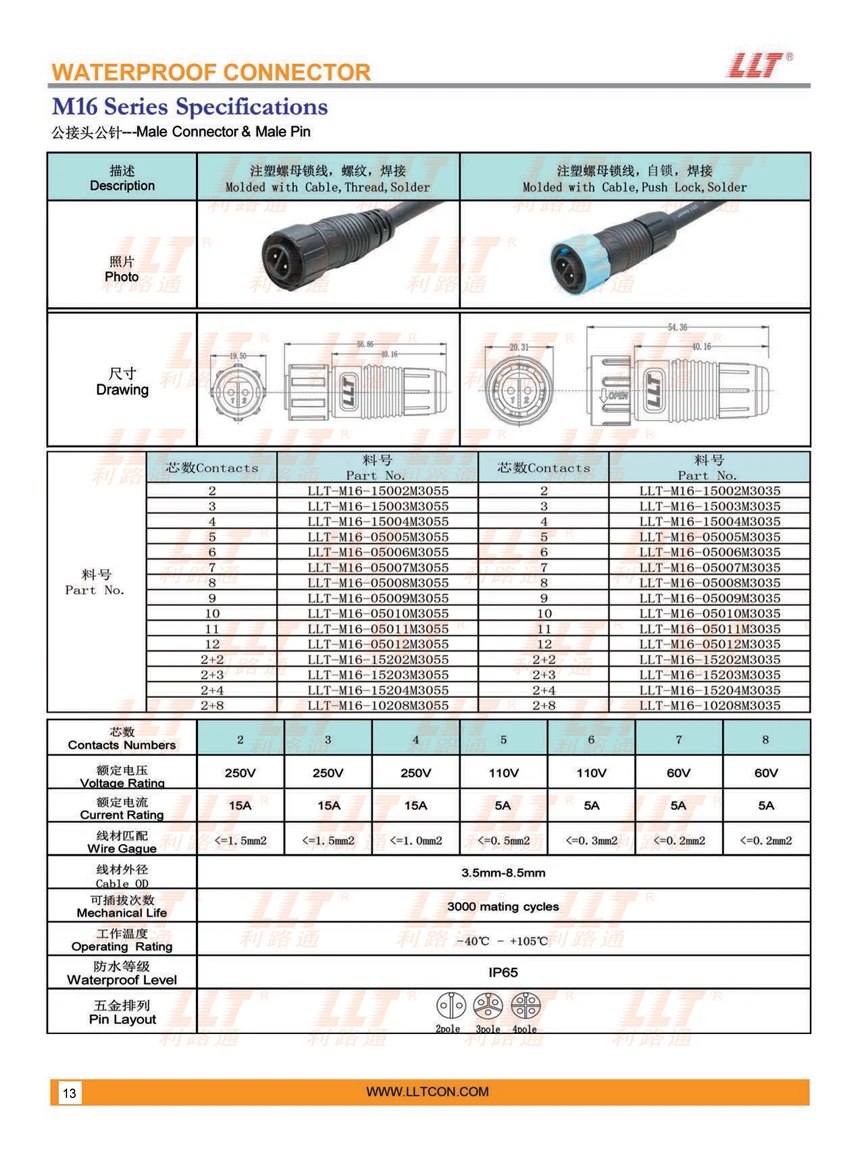 M系列规格 · 利路通连接器