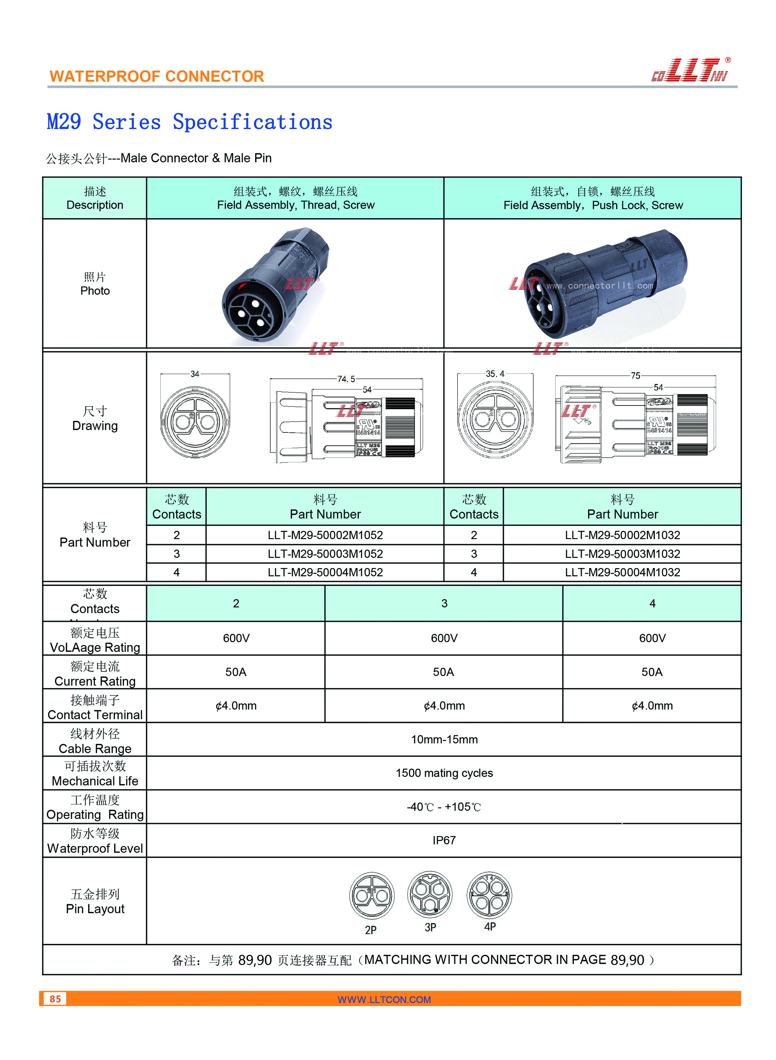 芯数:最高可至 35 Pin · 电流:35–80A(按需求) · 电压:按配置 · 插接:螺纹 / 自锁 · 密封:径向密封 / 平压密封