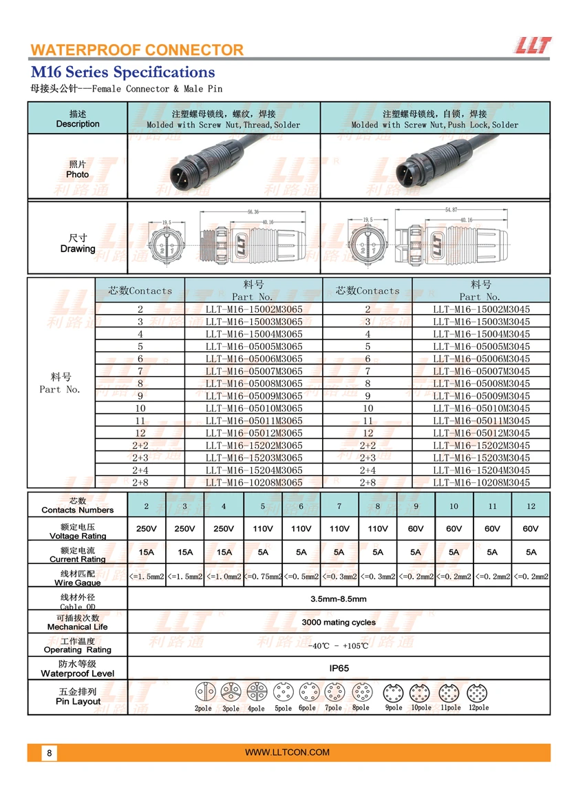 M系列规格 · 利路通连接器
